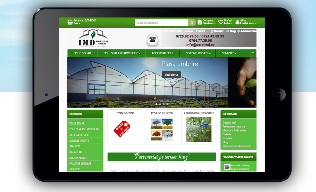Oferim o gama completa de folie pentru solar profesionala, folii si plase de protectie pentru solarii si sere, sisteme de irigare prin picurare si aspersie, rasaduri , seminte, ingrasaminte si proiecte la cheie.