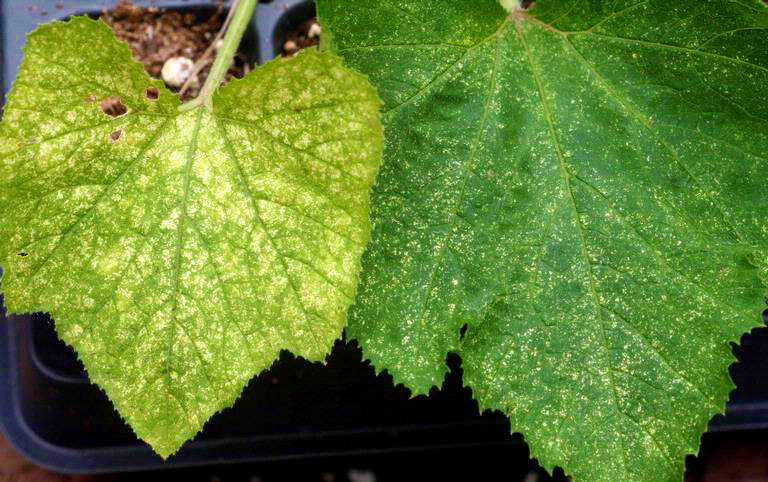 3.Fainarea: Pe partea superioara a frunzelor apar pete decolorate de dimensiuni mici care ulterior se extind. Pe partea inferioara a frunzelor , in dreptul petelor apare o pasla fina, cenusiu-albicioasa. Frunzele atacate se ofilesc si se usuca.