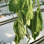 7.Ofilirea fuzariana: Se manifesta prin ofilirea si ingalbenirea frunzelor, in sectiune de tulpina se observa brunificarea tesuturilor vasculare. Factori de in fluenta pentru aparitia bolii: Temperatura 28-32⁰C, PH-ul solului 5-5,6 , Umiditatea ridicata , nivel scazut de potasiu in substrat si nivelul crescut de azot.
