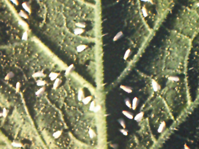 Daunator la culturile de legume din sere si solarii. Ciclul de evolutie al insectei se deruleaza pe partea inferioara a frunzelor, de unde larvele si adultii absorb prin întepare sucul celular. Ca efect, plantele se dezvolta cu întârziere si dau productii scazute. Atac însotit de secretii aderente la substrat, pe care, secundar, se dezvolta fumagina. Culturi cu aspect depresiv. Daunator cu potential ridicat de reproducere, prezinta în sere între 4–8 generatii de adulti si o prolificitate variind între 500–1500 de oua. Specie cu rezistenta dobândita la actiunea diferitelor pesticide.