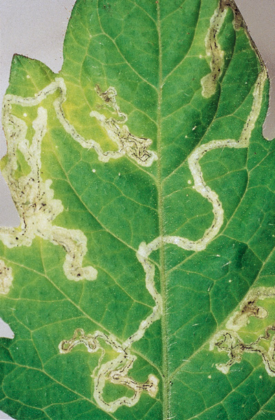 Musca miniera apare în sere si solarii si ataca în special culturile de tomate. Este daunator în stadiul de larva si se dezvolta în interiorul frunzelor distrugând tesuturile dintre epiderme. Atacurile produse au un caracter generalizat, evidentiat pe frunze prin prezenta a numeroase galerii înguste si ramificate, cu aspect sidefiu. Când numarul de galerii depaseste 50% din suprafata de asimilatie a frunzelor, acestea se usuca si cad. Musca miniera este un daunator specific culturilor de tomate din spatii protejate, dar ataca si în câmp. Principala sursa de infestare este reprezentata de rasadurile provenite din serele înmultitor.