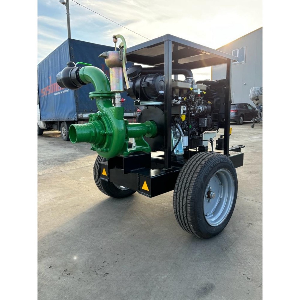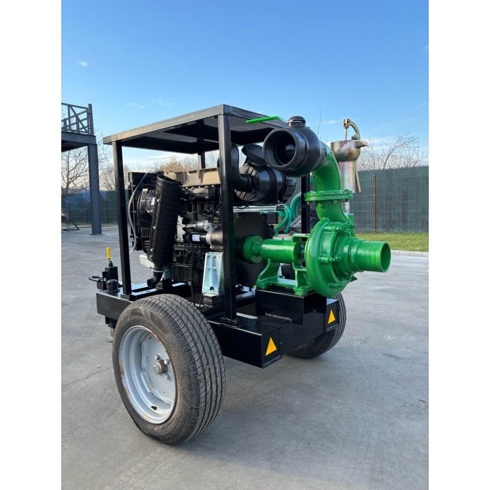 Motopompa este montata pe un cadru cu roti de 13"