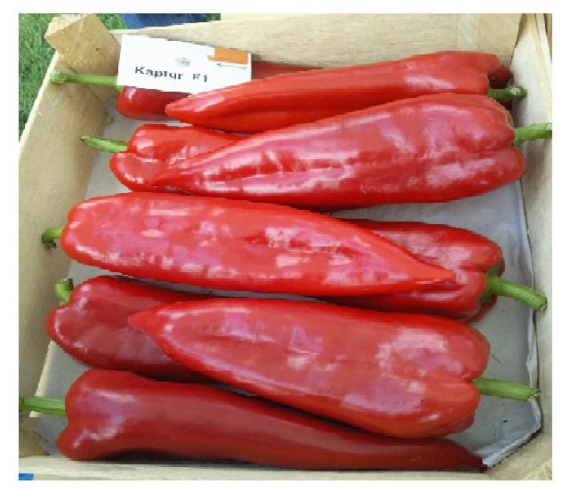 Kaptur F1 este un hibrid timpuriu, produce fructe de dimensiuni mari (peste 130gr) în doi sau trei lobi. Dimensiunile fructelor sunt de 18-20 cm lungime si 6-7 cm grosime. Culoarea vireaza de la verde închis catre rosu aprins. Caracteristic acestei varietati este si continutul ridicat de substanta uscata, care adaugate la faptul ca fructele sunt usor de copt si depelat, fac din Kaptur F1 o varietate excelenta inclusiv pentru industrializare. Excelenta este si toleranta la stres mai ales la cel termic specific plantarilor timpurii în câmp deschis.