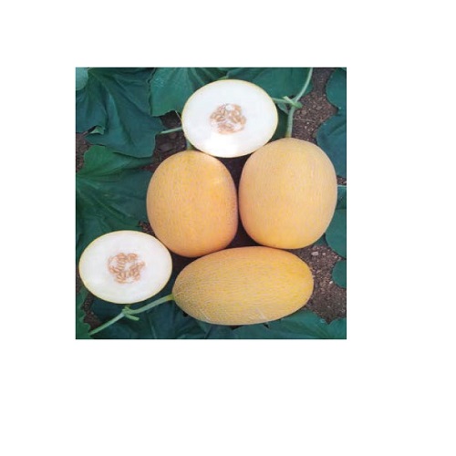 Fructul are forma putin plata, cu plasa pronuntata. Coaja are culoarea portocaliu spre galben, iar pulpa e de culoare verde cu seminte mici.